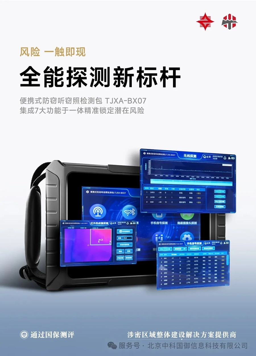 中科国御的解决方案三位一体,构成了纵深防御体系:检测门守住门,检测设备罩住场,检测包查净屋。三者联动,共同为涉密区域构建起一道外部渗不透、内部窃不走的钢铁防线,为维护国家安全提供坚实的技术支撑。